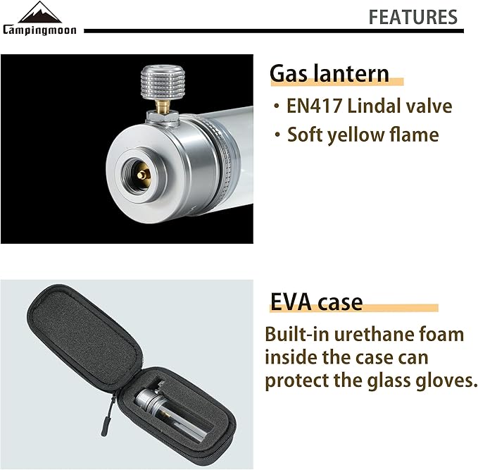 CAMPINGMOON Gas Candle Lantern w/ EN417 Lindal Valve Standrad Camping Canister T-1D