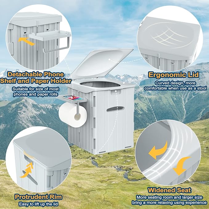 - 【Multifunctional and Widely Applicable】With lid, it can not only be used as an outdoor toilet, but also as a trash can, a storage box, a stool, a vomiting bucket, etc. to satisfy your different needs when taking outdoor activities. Perfect for backpacking, traveling, camping, fishing, hiking, long road trip, and more.