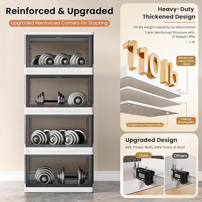 - Quick Assemble & Fold: Our storage containers can be assembled in 1 minute and folds down to 4 inches when not in use, easily tucking under beds/tight spaces—saves 80% of space. Heavy-duty PP plastic (2mm thick walls) supports 110 lbs (50 kg)/pack