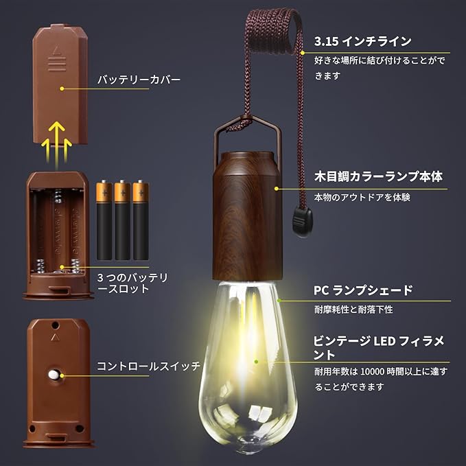 - [battery camping lantern]The lamp comes with 3 aaa battery, which lasts 5-6 hours.The battery can be replaced at any time.Lamps can be used directly without installation.The product is equipped with a remote controller, which can be used remotely.