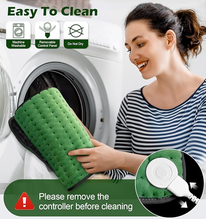 - Heating Pad for Back Pain Relief: Electric heating pad for back pain relief delivers a stream of heat to the affected area, eases back pain, unbearable cramps, and provides pleasant muscle relaxation. It is ideal for relieving sore muscles at your back, shoulder, abdomen, neck, knee and leg. The heating pad is machine washable, but do not tumble dry as drying will destroy the plush on the surface