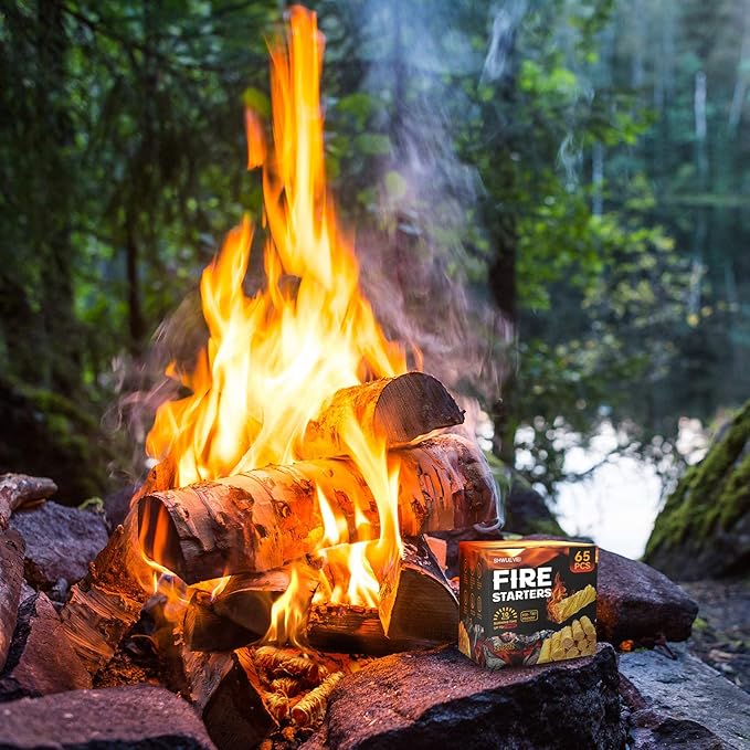 Shwuevei 65 pcs Fire Starter - Natural Fire Starters for Fireplace, Pellet Stove & Wood, Fire Pit, Smoker, BBQ, Chimney, Pizza Oven - Fire Starters for Grill, Charcoal Starter
