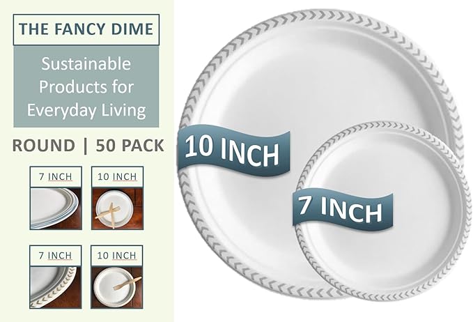 Disposable Paper Plate: Heavy Duty Elegant Eco-Friendly Compostable Paper Plates (50 Count), Tree Free Sugarcane Bagasse Plate with Color Party Plate (Silver Chevron, 10 inch)