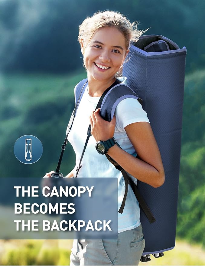 - EASY TO CARRY: The canopy becomes a carry case when folded secured by two durable snap-lock buckles, and the comfortable padded shoulder straps make the folding chair with canopy as easy to carry as a backpack - no more bags to deal with!