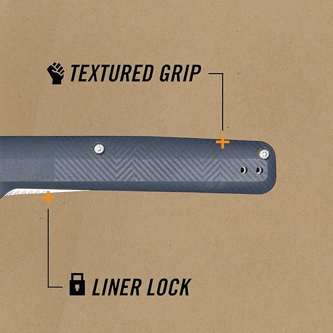 - QUALITY CRAFTED: Features a stainless steel, plain edge blade, textured grip, liner lock, reversible thumb stud, and reversible pocket clip