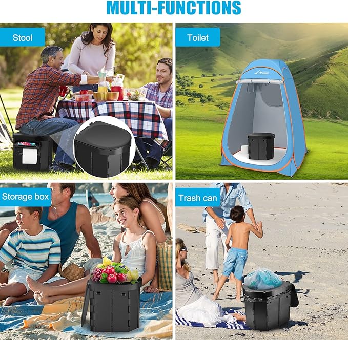 - 【Multifunctional and Widely Applicable】With lid, it can not only be used as an outdoor toilet, but also as a trash can, a storage box, a stool, a vomiting bucket, etc. to satisfy your different needs when taking outdoor activities. Perfect for backpacking, traveling, camping, fishing, hiking, long road trip, and more.