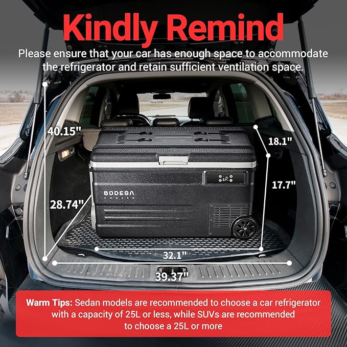 - 【75L Large Capacity】BODEGACOOLER 12v car refrigerator has a 75L large capacity,you can cool drinks,seafood,snacks,meat,beverages,etc at the same time.This single zone car refrigerator is best choice for camping,party,boating,fishing,outdoor and travel and fully meets RV or truck drivers,boat owners and campers needs.