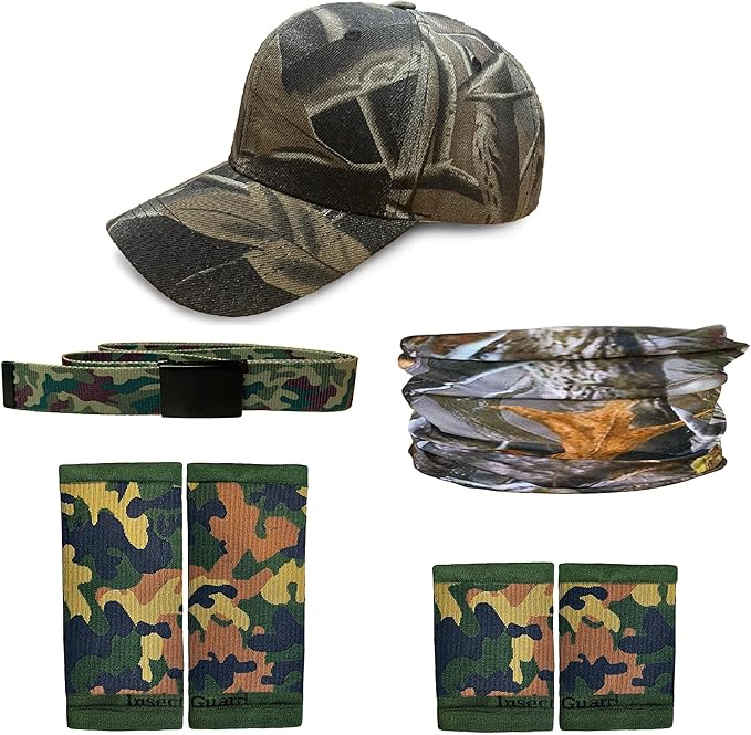 - This package includes 1 Camouflage Size Adjustable Hat, 1 Camouflage Length Adjustable 54 Inch Fabric Belt, 1 Pair of Camouflage 7 Inch Long Tick Gaiters / Sleeve Cuffs,1 Pair of Camouflage 5 Inch Long Tick Gaiters / Sleeve Cuffs and 1 Camouflage Tube Bandana. Repels mosquitoes that may carry the Zika Virus and West Nile Virus. Repels ticks that may carry Lyme disease. Registered to Repel mosquitoes, ticks, ants, flies, chiggers and midges. Great for turkey hunting!