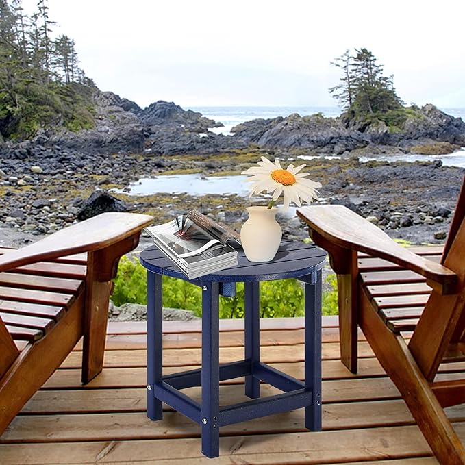 LZRS Round Adirondack Patio Side Table End Table, Outdoor Side Tables for Patio, Backyard,Pool, Indoor Companion, Easy Maintenance & Weather Resistant(Navy Blue)