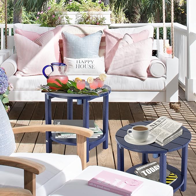 LZRS Round Adirondack Side Table Double End Table, Outdoor Side Tables for Patio, Backyard,Pool, Indoor Companion, Easy Maintenance & Weather Resistant(Navy Blue)