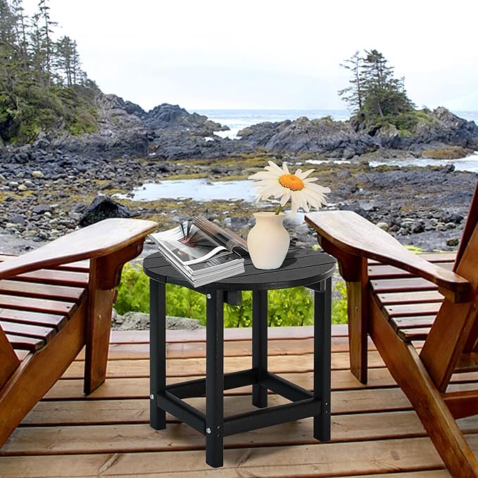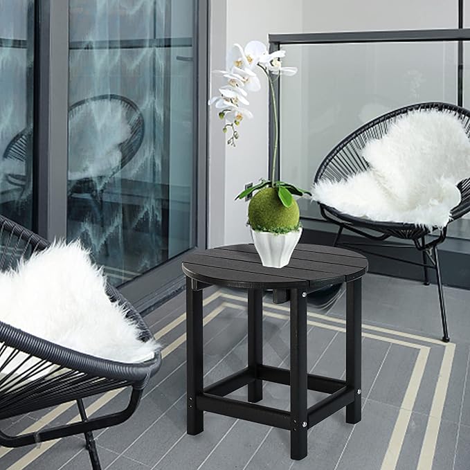 LZRS Round Adirondack Patio Side Table End Table, Outdoor Side Tables for Patio, Backyard,Pool, Indoor Companion, Easy Maintenance & Weather Resistant(Black)