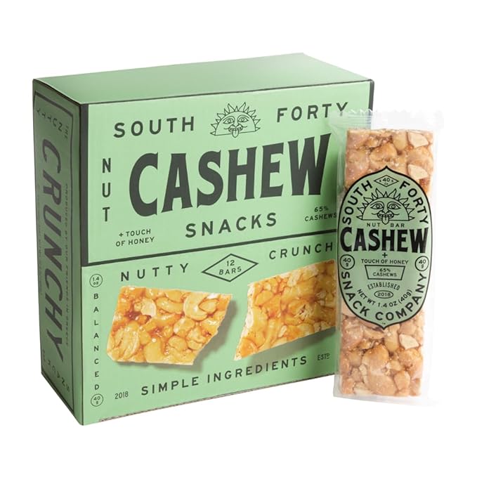 South 40 Snacks Crunchy Cashew Bar, Just 4 Ingredients, Touch of Honey (40g Bar, Pack of 12)