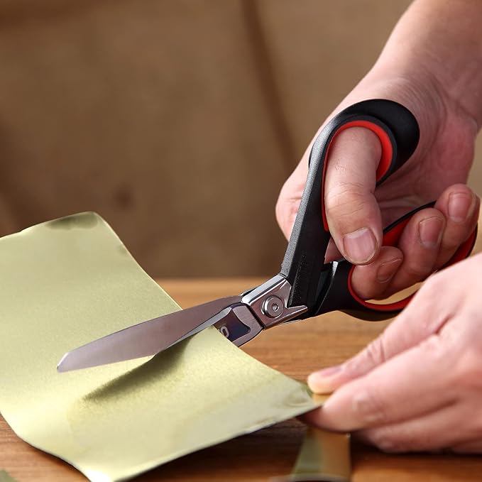 - ULTRA SHARP and MULTIPURPOSE: This scissors is made of professional high carbon stainless steel which is higher hardness not easy to fracture and it is more sharp than the ordinary scissors. Triple-density stainless steel heavy duty scissors with a forged process is suitable for cutting many types of materials and objects for smoother cuts, such as rope, twine, plastic board, wrapping paper, mesh plants, Tin foil plate, fabric, cloth, quilting, leather and more.