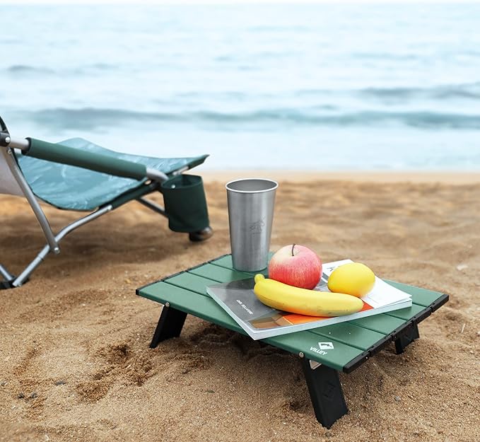 VILLEY Portable Mini Folding Beach Table, Ultralight Aluminum Side Table with Carry Bag for Camping, Picnics, and Outdoor Activities