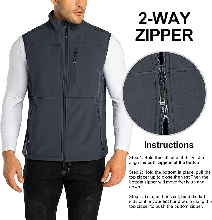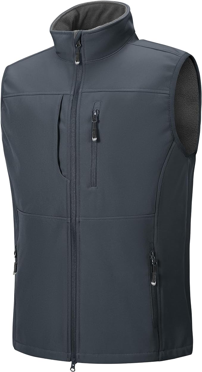 • MEN'S WINDPROOF VEST FOR WINTER & FALL ---The sleek softshell fabric is stain & abrasion resistant, windproof to keep you warm and neat. The fleece insulation traps heat, but still allows air to flow so you don't overheat.