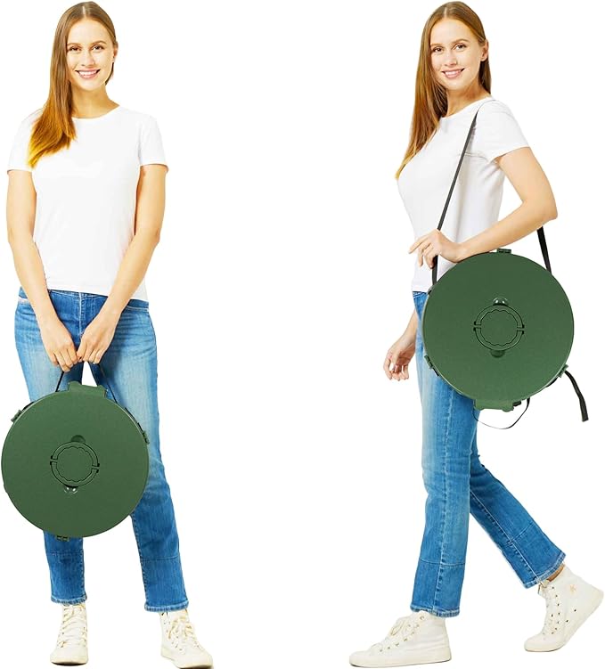 - Portable: When fully folded, it measures 15 inches (diameter) x 3.3 inches (height), making it very compact and space-saving. Weighing 4.4 pounds, it comes with a built-in carry handle and shoulder strap, making it easy to carry for camping, traveling, hiking, fishing, and any other outdoor activity. An additional storage bag is included—we are upgrading the star-style storage bag to a double-shoulder style in solid black, you will receive one style of these.