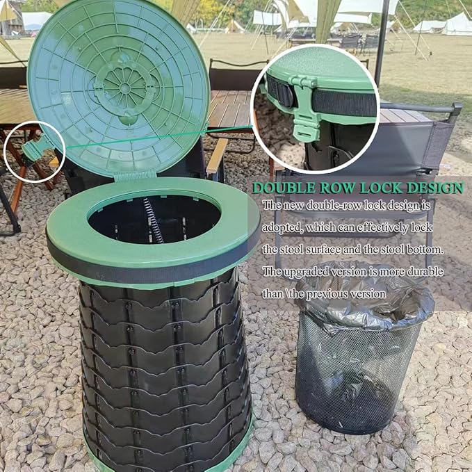 - Multifunctional Toilet Stool: The versatile double-layer flip-top design allows for flexible use, allowing you to use it as an outdoor camping toilet, car/boat toilet, folding stool, trash can, storage bucket, vomit bucket, and more. The adjustable height range is 3.3-19.7 inches, approximately 6.7 inches taller than a standard outdoor toilet, making it suitable for users of different heights and varying functional needs.