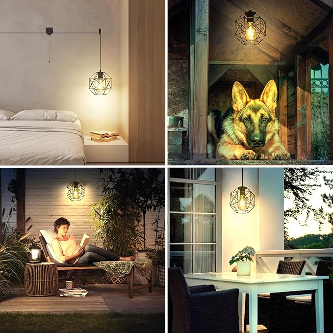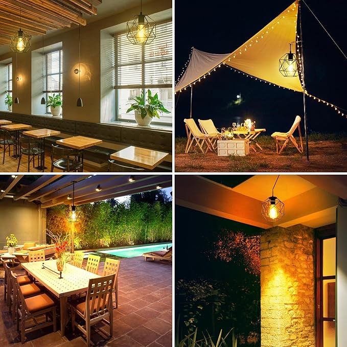 - 【Solar Outdoor Lights】This solar pendant light has both classic elements and modern style with black hard wire metal cage. Solar panel and light body are designed separately.It is perfect to install at door entry, walkway, patio, in the yard, under the trees and tool room or garage.