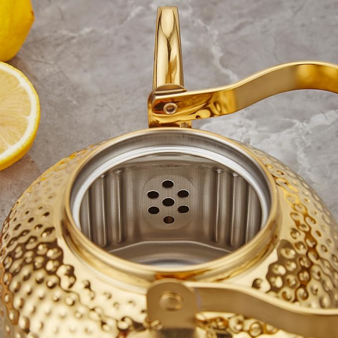 SANQIAHOME Antique 1.2L (40Oz) Stainless Steel Teapot with Infuser Gold