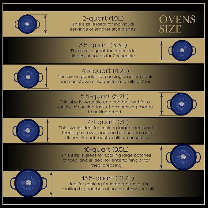 - LONG-LASTING LUXURY Carefully crafted from a flameproof, non-porous enamel, our cast-iron cookware resists odors, chipping, cracking, crazing, and rippling. The vibrant finish will be the envy of your next potluck, dinner party, or family holiday.