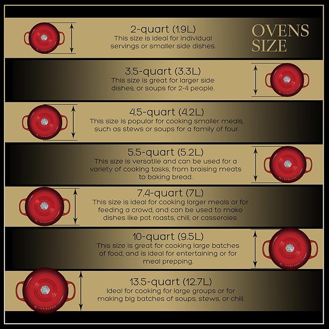 - LONG-LASTING LUXURY Carefully crafted from a flameproof, non-porous enamel, our cast-iron cookware resists odors, chipping, cracking, crazing, and rippling. The vibrant finish will be the envy of your next potluck, dinner party, or family holiday.