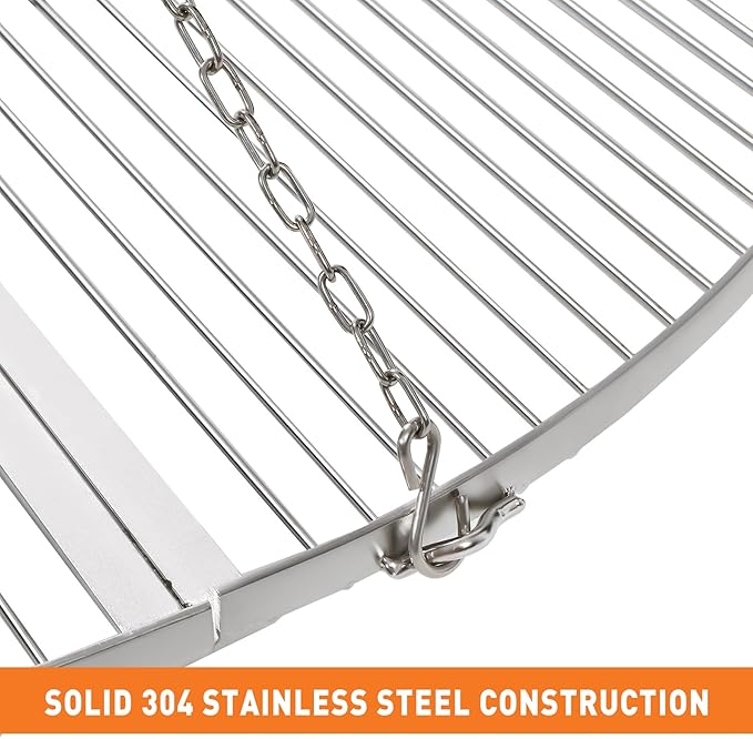 - Versatile Usage Options: Enjoy flexibility with 2 setup methods. Use the included stainless steel chain to hang it from a tripod campfire rack for elevated grilling, ideal for even heat distribution. Or remove the chain and place it directly over fire pits for a classic, stable grilling experience—adaptable to any outdoor cooking scenario.