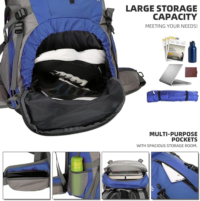 70L Hiking Backpack with Rain Cover Lightweight Travel Backpack Waterproof Camping Backpack