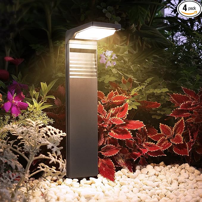 Solar Pathway Lights 4 Pack with Warm White and Cool White Mode, Modern Solar Path Lights Outdoor Waterproof, Perfect Solar Lights for Backyard, Lawn, Driveway, Walkway, Garden Decorative.