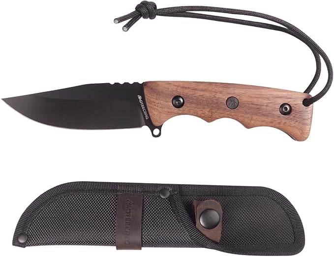 - 【Contracted Design】The black oxide blade makes our knives look very exquisite. Natural walnut wood Handle can make you grip tightly and makes this fixed blade knife looks more luxury and high-end. Great gift for any special occasion- birthdays, weddings, graduations and more.