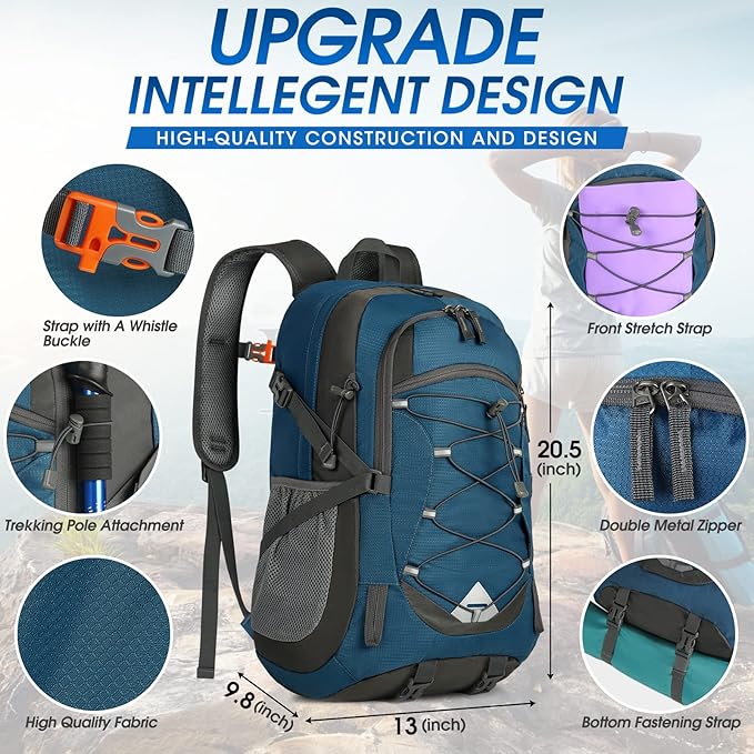 - 【Upgraded Wet Pocket Design】The lightweight hiking backpack stands out with a more user-friendly design that is easy to use. A waterproof wet pocket has been added on the back,and a zipper on the back leads to an internal wet pocket for better separation of sweaty clothes, towels or other personal items after exercise.Effectively separate the items in the water resistant hiking backpack wet and dry.