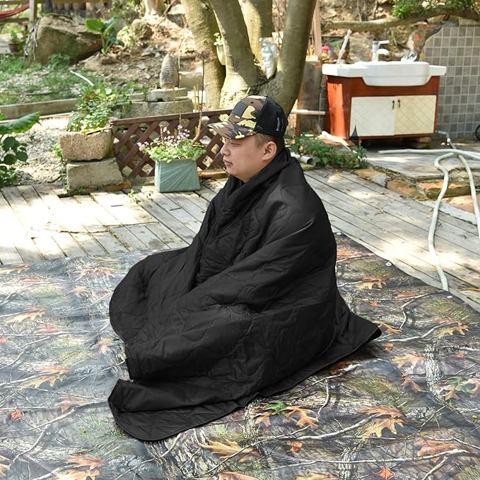 - MULTIPURPOSE: The survival blanket can be used as camping and outdoor blanket, beach mat, picnic mat, poncho, but alse a fun option at home for enjoying outdoor movie nights or fire-pits. This lightweight and compact camo blanket is great to make your camping, hiking, backpacking, picnicking, hunting, and fishing trips so much easier.