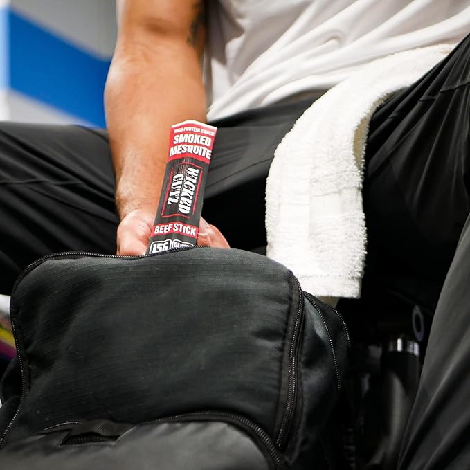 - MESQUITE SMOKED FLAVOR with a strong blend Mesquite Wood gives a sweet earthy taste to this delicious protein snack that satisfies cravings without the guilt of traditional snacks or potato chips. Individually wrapped snacks are delicious, tender, and perfect for when hunger strikes, on-the-go nutrition, hiking, camping, or office snacks.