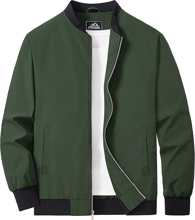 MAGCOMSEN Men's Bomber Jacket Lightweight Casual Zip Up Windbreaker Spring Fall Golf Coat with Pockets