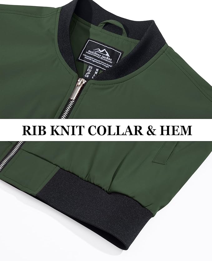 - Design - Bomber jacket comes with Ribbed collar, hem and cuffs, full zip, long sleeves for warmth and style.