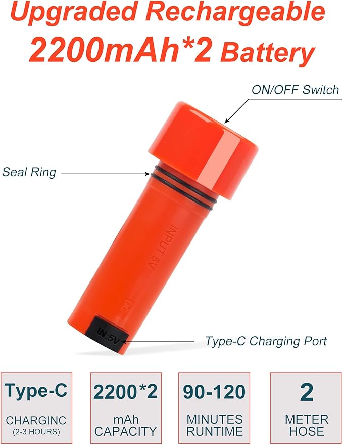 - 【2*2200mAh Batteries with 1 Year Warranty】innhom portable shower for camping come with 2 detachable batteries and a type-C charge cable for fast charging. When fully charged, the 2 batteries can provide 90-120 minutes of continuous use. The light on the battery switch indicates the battery power level. innhom portable shower comes with 1 Year Free Warranty to ensure your pleasant shopping experience. Any problems, feel free to contact us.