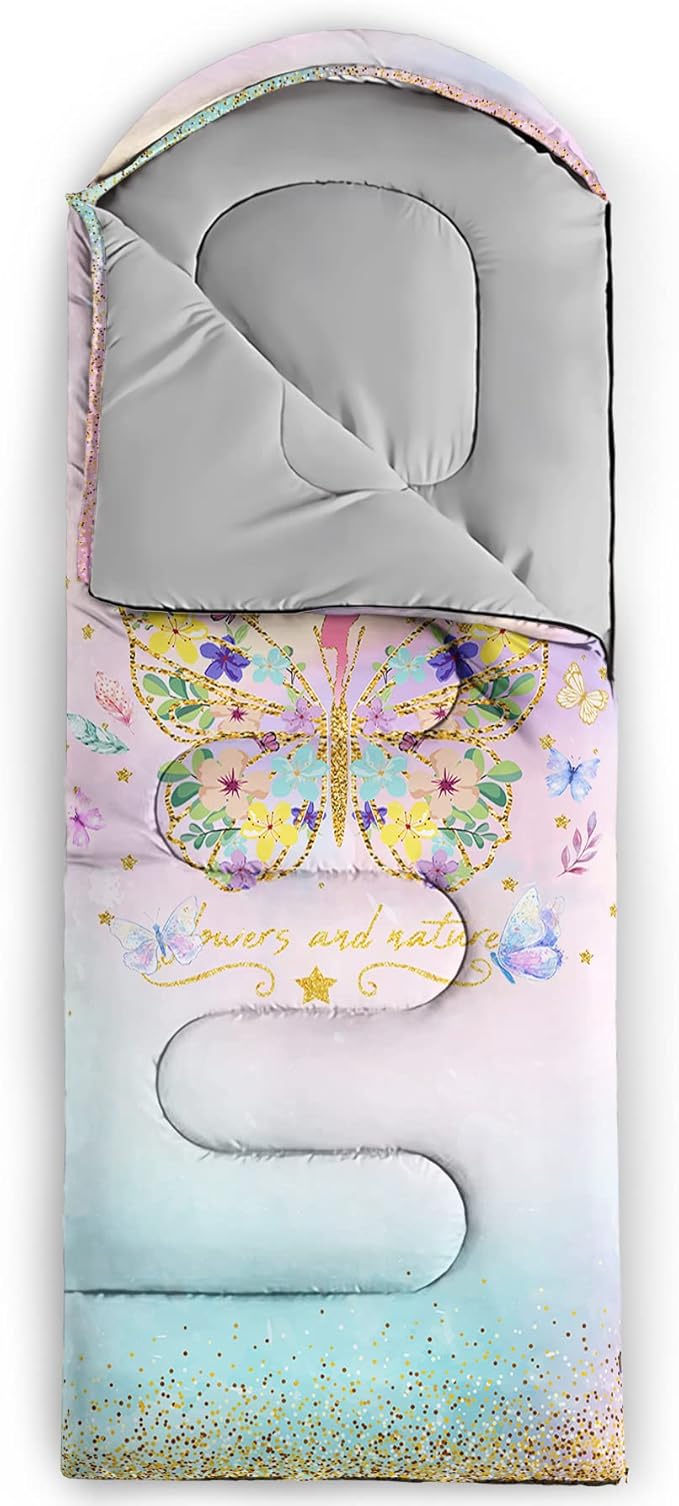 - A THOUGHT OUT DESIGN: Drawstring allows you to tighten hood and keep you warm. The idea of having a zipper at the foot to allow more warm or cool air to enter or exit the bag in different times of the season.Our Butterfly Cloud sleeping bags are designed to provide much needed rest after a full day of outdoor activities.