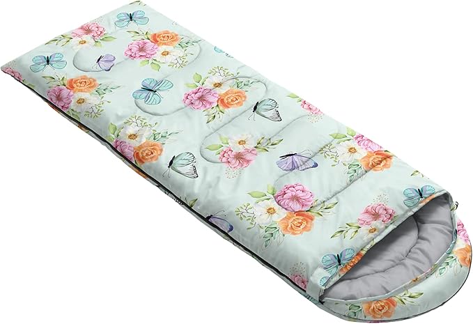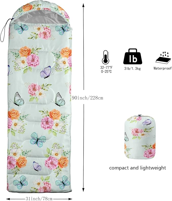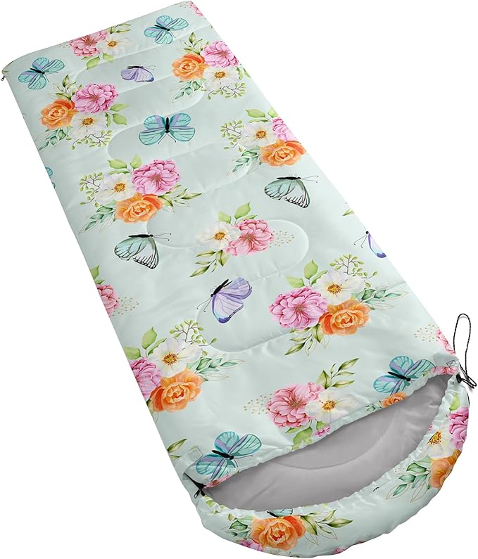 - A THOUGHT OUT DESIGN: Drawstring allows you to tighten hood and keep you warm. The idea of having a zipper at the foot to allow more warm or cool air to enter or exit the bag in different times of the season.Our Butterfly Flower sleeping bags are designed to provide much needed rest after a full day of outdoor activities.