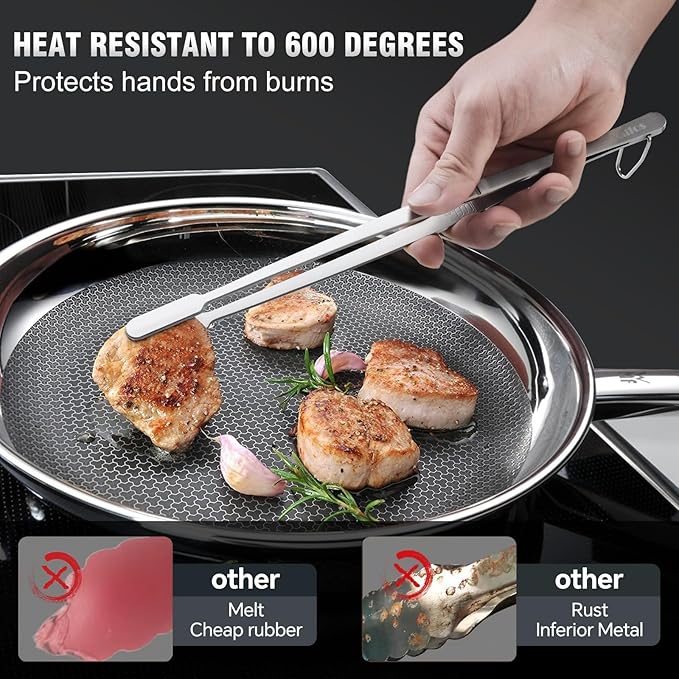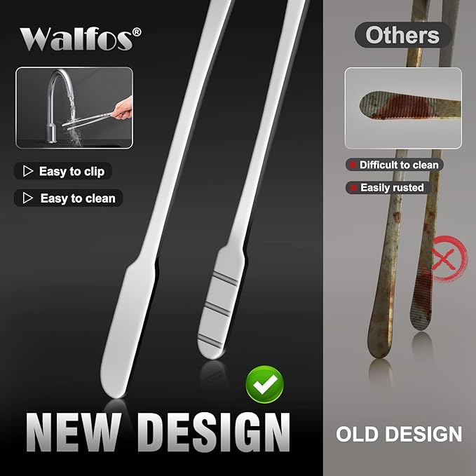 - 1. PREMIUM MATERIAL - Walfos kitchen cooking tweezers are made of high quality food grade stainless steel , have good rust and heat resistance. It is non-toxic and safe to use. The thickened kitchen tweezers are very sturdy, While keeping it light and easy to handle!