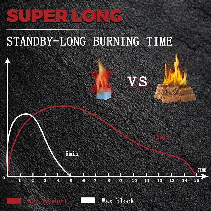 - 【Lasting Lighting】The light can burn quickly in a short time,save your time.It will glow even in wet conditions,outdoor must-have. Combustion lasts for 8-10min.Can bring you lasting warmth in cold environment.