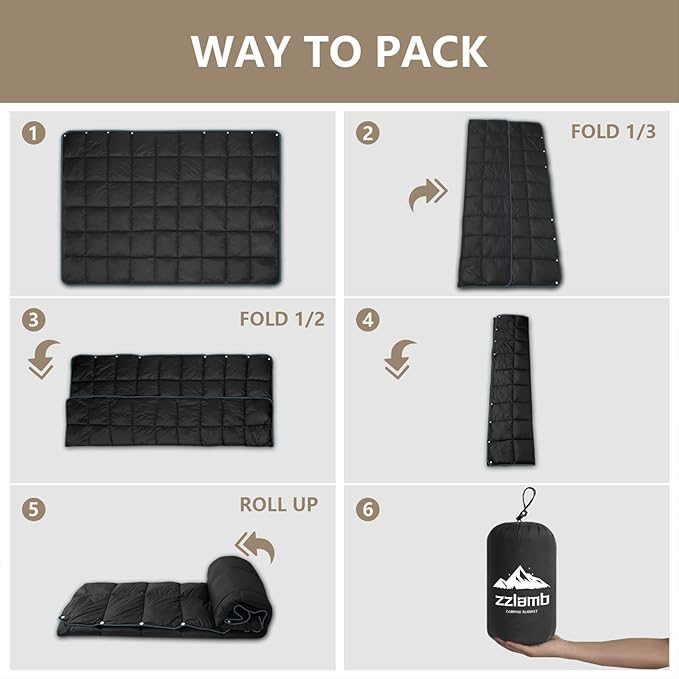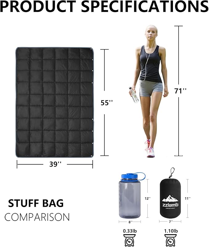 zzlamb Camping Blanket, Compact Lightweight Soft Puffy Blanket Water-Repellent, Packable Warm Quilt Down Alternative Picnic Hiking Backpacking Beach Travel RV Airplane Couch Car