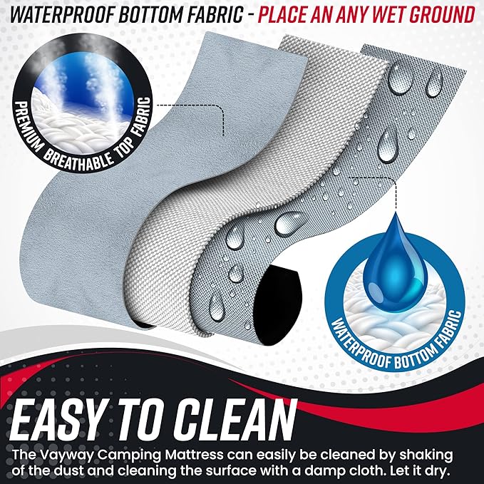 - EASY TO CLEAN- The Vayway Camping Mattress can easily be cleaned by shaking of the dust and cleaning the surface with a damp cloth. Let it dry. The Camping mattress bottom is waterproof. It could be put on the grass.