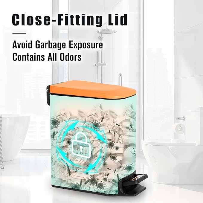 Cesun Small Bathroom Trash Can with Lid Soft Close, Step Pedal, 6 Liter / 1.6 Gallon Stainless Steel Garbage Can with Removable Inner Bucket, Anti-Fingerprint Finish (Matt Orange)
