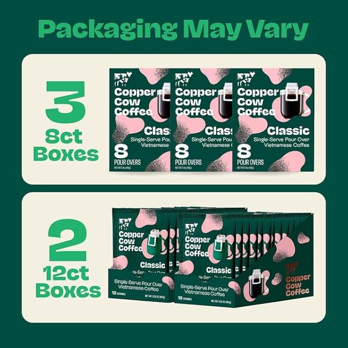 Copper Cow Premium Pour Over Single-Serve Vietnamese Coffee | Classic Black | Dark Roast | Includes 24 Coffees