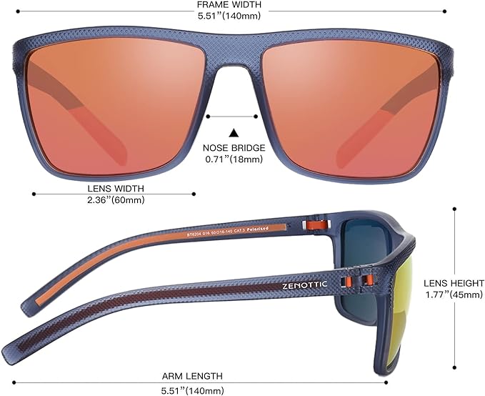 - 【Product Dimension】Lens Width: 60 MM(2.36 inches) | Lens Height: 45 MM(1.77 inches) | Temple Length: 140 MM(5.51 inches) | Nose Bridge: 18 MM(0.71 inches) | Frame Length: 140 MM (5.51 inches).