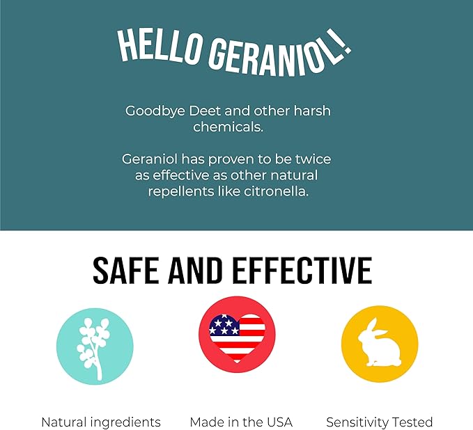 - NATURAL INSECT REPELLENT - Developed by a dermatologist for her own family who wanted a spray alternative. Bye-bye, bug spray. Added bonus, Geraniol can be more effective than citronella and DEET.