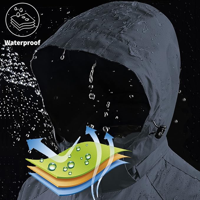 Mens Lightweight Waterproof Jacket Windproof Rain Hooded jackets for Running Hiking Cycling Travel M-7XL