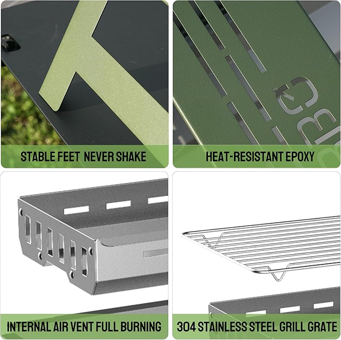 - UNIQUE DESIGN: the expanded area on both sides of the small barbecue grill can hold skewers and seasoning bottles freeing your hands, and the charcoal slot venting design immediately makes the charcoal glow without extra effort. In just a few minutes, you'll be serving up delicious grilled sausages and juicy steaks!