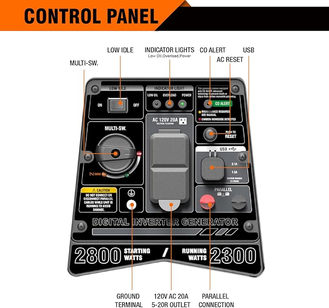 - 【Powerful Engine And Safe For Sensitive Electronics 】The GENMAX 2800 Starting Watts Inverter Generator with inverter technology and Maganetic dipstick produce 2800 Starting Watts/ 2300 Running Watts clean power (less than 3% THD), confidently connect your sensitive electronics such as TV, lights, fans, small power tools and more on camping trips, etc.