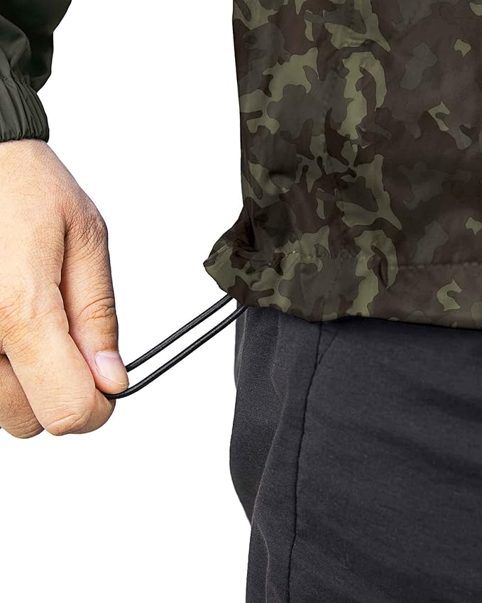- 【Unique Design】Lightweight lite rain jacket elastic cuffs prevent the rain drops to the cuffs; Adjustable drawcord hood to prevent yourself from being wet; The hem contains elastic rope for warmth and keep you dry. Suitable for casual wear, outdoor sports, outdoor work, traveling, cycling, hiking, climbing, fishing, camping, hunting.