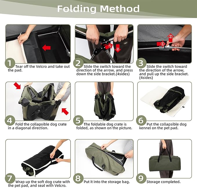 - HIGH-QUALITY STAINLESS STEEL TUBE: The collapsible dog crate is made of green stainless steel and does not use paint, ensuring resistance to beach conditions. The dog travel crate provides you with a safe worry-free outdoor experience.